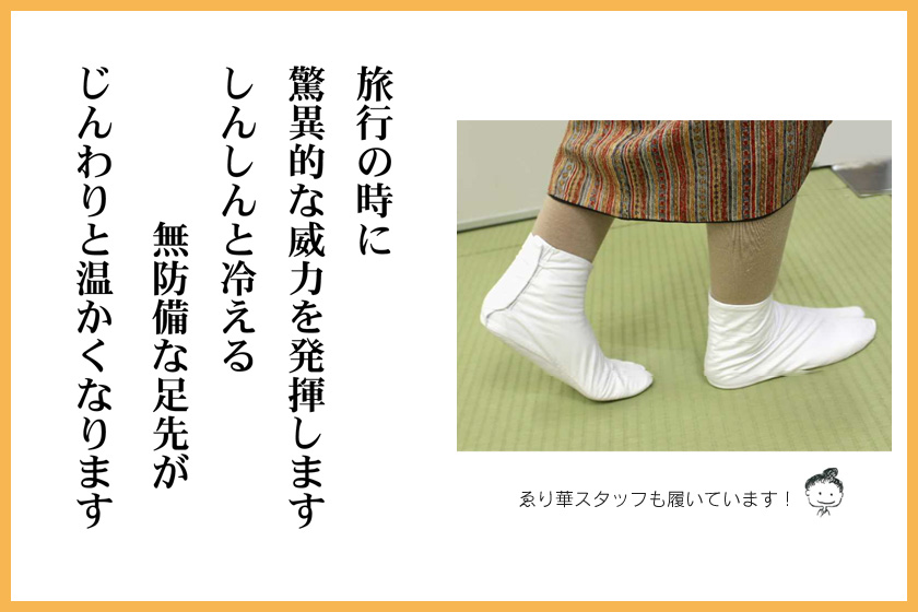 寒い京都の冬を着物で過ごす舞妓さんの声から生まれた足袋の中に履くインナーです。
