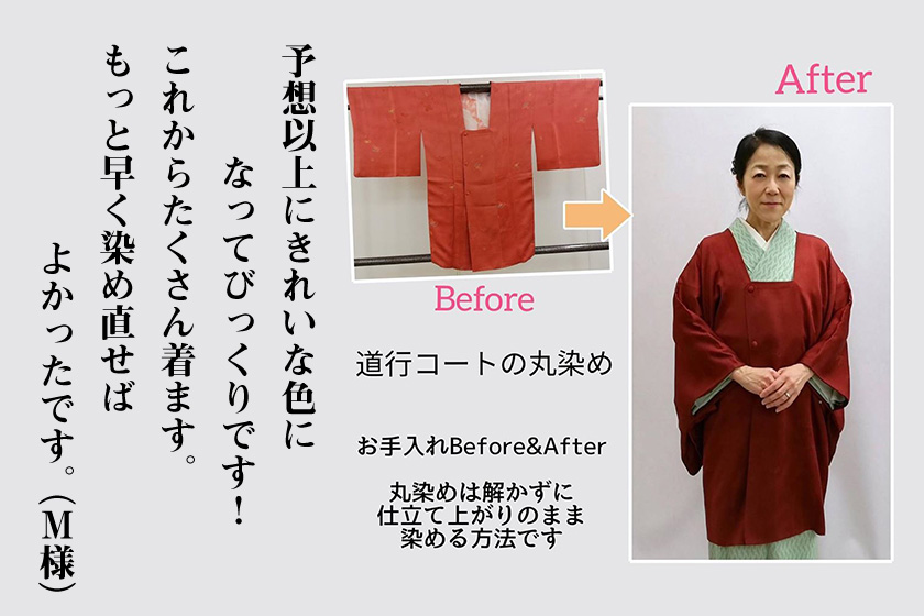 染め替える事で再び着られるようになって、とても喜ばれています。