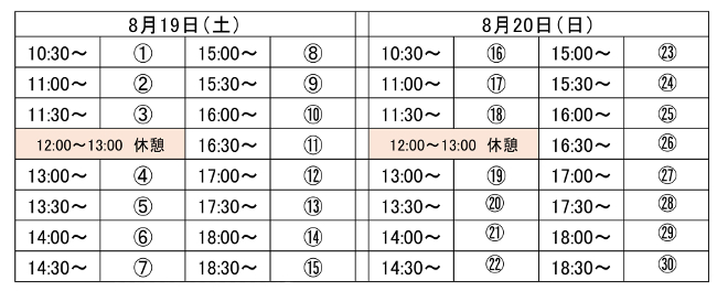 ◆ご希望の時間帯(下記表の数字からお選びください)