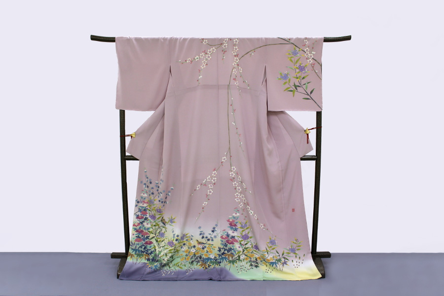 加賀友禅現代の巨匠にして日展作家・百貫華峰師の画風を受け継ぐ。