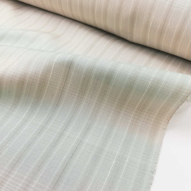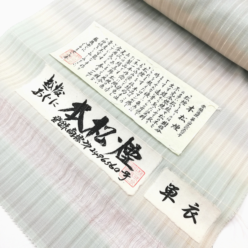 光沢のある絹真綿糸に本松煙染めのまろやかな優しい色合いが単衣から夏に向けて涼やかに装ってくれます。