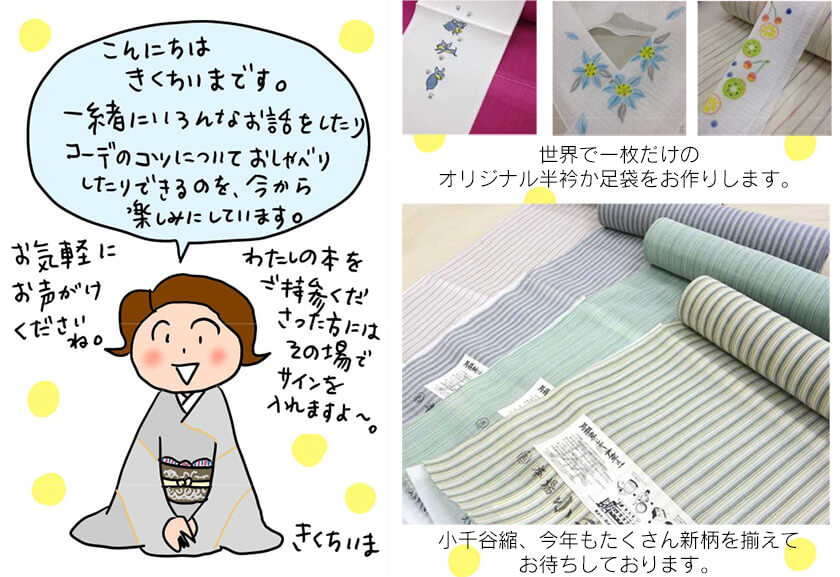 ・きくちいま☆オリジナル制作委員会麻襦袢<彩夏>・紫織庵さんとのコラボ<染近江上布>・オール山形企画<skala>・おうちで洗えるふだん着物<303シリーズ>。