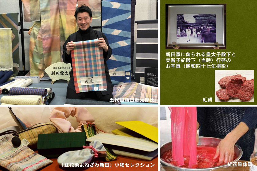 新緑の候、皆様ご健勝のこととお慶び申し上げます。新しい時代の記念すべき最初の展示会を、皇室とご縁の深い「紅花染よねざわ新田」を開催致します。この度五代目当主の源太郎氏が来場し、新田家に伝わる独自の物作りについてお話ししてくださる、貴重な時間を頂きました。お楽しみ満載で開催致します、是非お気軽に遊びにいらしてください。