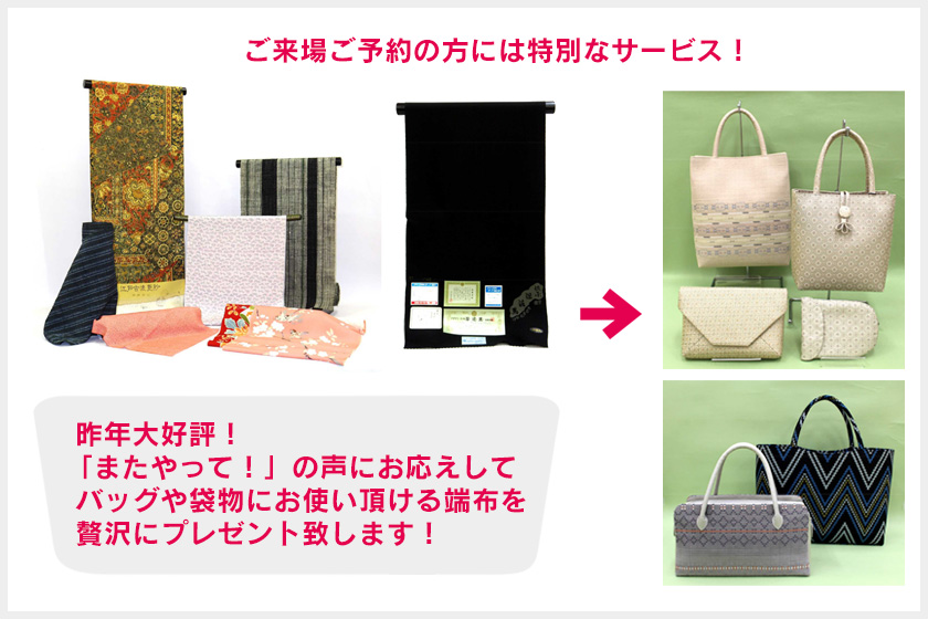 バッグの加工代も特別価格でサービス致します。是非ご予約くださいね。