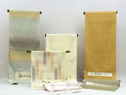 小千谷では豊かな自然に恵まれた土地で、良質な紙・柿渋・栗・松などから、紙布・栗繭・柿渋染・松煙染などが行われ、表情豊かな紬や帯が作られています。