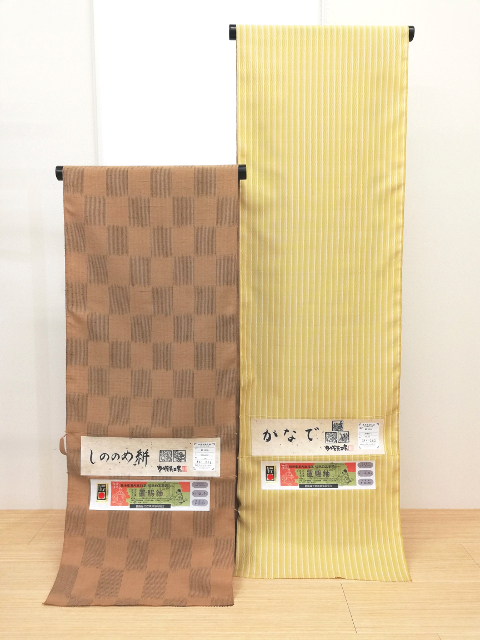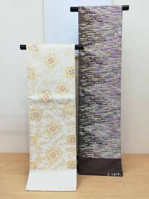 西陣の若手有志の発表会「織陣座」を青山スパイラルホールで開いた折に知己を得て以来物創りの指針や評価をもらったり独立された年に個展催事を組んでもらったり、親しく共に歩んで来れた大切なお店と思っています。20周年には新感覚の袋帯をお届けして、価格でも喜んで頂けるよう考えています。