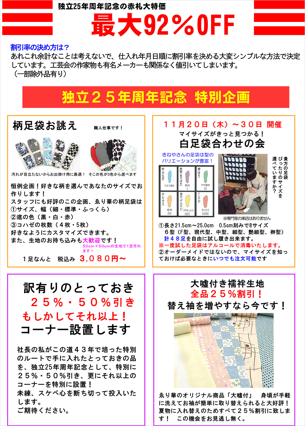 お陰様で独立25年周年記念! 秋の大バーゲン