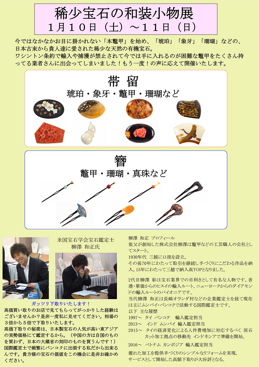 稀少宝石の和装小物展 1月10日(土) – 11日(日)