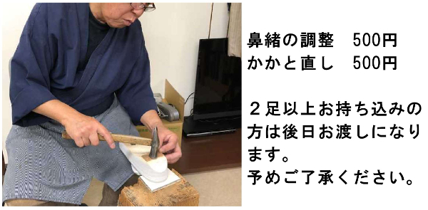 鼻緒すげの職人さんが4日間ご来場、あなたの足にぴったりのすげ加減で調整してくれます。