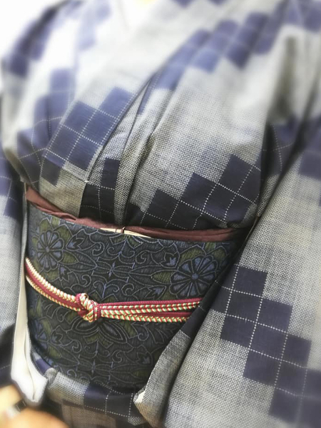 着物でご来店 S・A様2018/12/07 【羽織】着物から仕立て変えたもの 【着物】紬 【帯】着物から仕立て変えたもの ご身長が高く、お気に入りのお母様のお着物の裄がどうしても短いということで、羽織にお仕立て直ししました。 袖付にハギを入れて裄をたっぷりにしピッタリサイズに。 ますますお気に入りになり、重宝していると喜んでいらっしゃいます! さらに、今日は着物を仕立てかえた帯を締めてのご来店です。 ゑり華で作りかえた帯と羽織、いろんな方に褒められるとのこと、すごく嬉しいです。