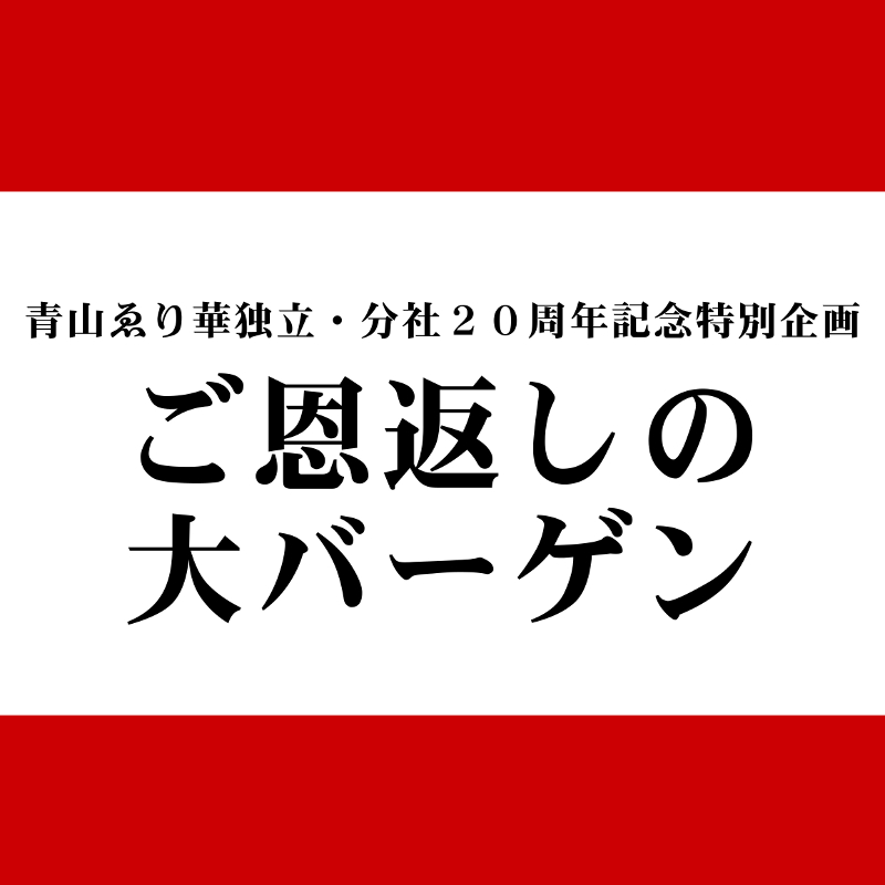 青山ゑり華 独立20年 ご恩と感謝の20倍返し お陰様で青山ゑり華は、金沢のゑり華より独立分社して2...