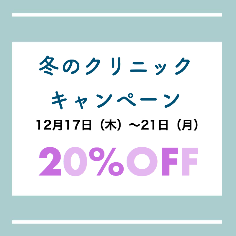 今年もやります!冬のクリニックキャンペーン 12月17日(木)から21日(月) 期間中の丸洗い、しみ...