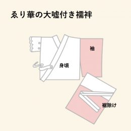 長襦袢を身頃と裾除け部分にわけたものを「二部式襦袢」あるいは「うそつき襦袢」といいます。