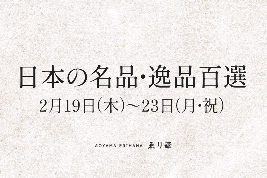 この度、名品・逸品百選を二月十九日(木)~二十三日(月・祝)の五日間、青山ゑり華店内にて開催させていただきます。