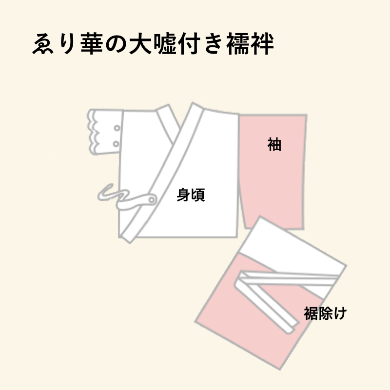 長襦袢を身頃と裾除け部分にわけたものを「二部式襦袢」あるいは「うそつき襦袢」といいます。