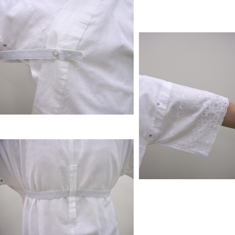 短いレースの筒袖の肩の部分には、小さなスナップがついていて、ここに袖がつくのです。