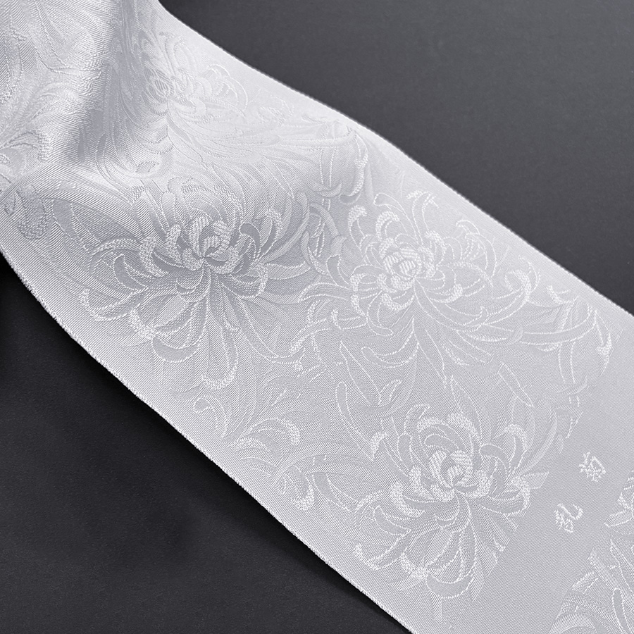白い生地だからこそ際立つ、クラシカルで華やかな乱菊文様。主張しすぎず、けれど確かな存在感があり、顔まわりを上品に引き立ててくれます。